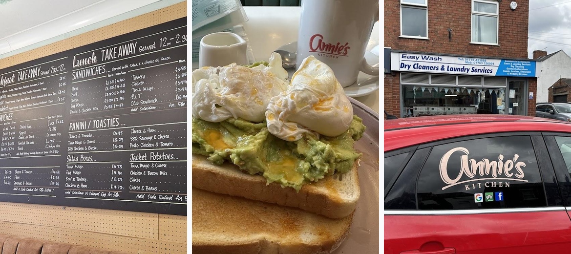 Annie's Kitchen, Cafe in Leyland: A Taste of Home Stepping into Annie's Kitchen in Leyland is like being wrapped in a warm, welcoming embrace. This traditional cafe, though humble in its setup, consistently delivers a culinary experience that reminds my boy of grandma's home-cooked meals.. Try the BIG Belly Busting Breakfast Bonanza. I couldn't finish it... The secret to Annie's success lies in the high-quality ingredients she uses. Each dish, lovingly prepared, speaks volumes of her commitment to quality. (How she does it in that tiny kitchen amazes us). Her brilliant suppport team complements the dining experience with their dedication and willingness to go the extra mile, ensuring that nothing is too much trouble for any guest. My favourite, the full English, or if I'm in a rush, a bacon and sausage barm. The coffee is also lush. As a regular visitor with my boy, I am continually impressed by the fantastic value offered here. The prices are just right, and even if you were to attempt these dishes at home, replicating the quality and heartwarming touch of Annie's cooking would be a tall order. In my boy's words, the food here is "sublime". And I couldn't agree more. Thank you, Annie and team, for bringing a taste of home-cooked food to Leyland. We're already looking forward to our next visit A visit to Annie's Kitchen is not just about enjoying great food, it's about experiencing the warmth of a family, where every meal feels like a return to my dearly missed mums kitchen.